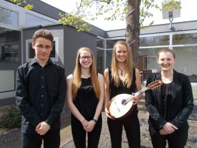 Eine große Ehre wurde unserem Zupfquartett zuteil. Im Rahmen des Bundeswettbewerbes "Jugend musiziert" wurden Jolina Beuren, Julia Koitzsch, Victoria Scheidt und Marco Di Cianno als 1. Bundespreisträger mit dem Sonderpreis für herausragend Leistung ausgezeichnet.